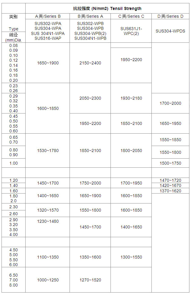 材質參考:301,302,304,304H,316等。